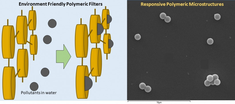 Diseñamos y construimos nuevos polímeros capaces de atrapar contaminantes del agua, y que además sean capaces de degradarse en sustancias inocuas. También fabricamos nano y microestructuras capaces de responder a un estímulo y de post-funcionalizarse.
