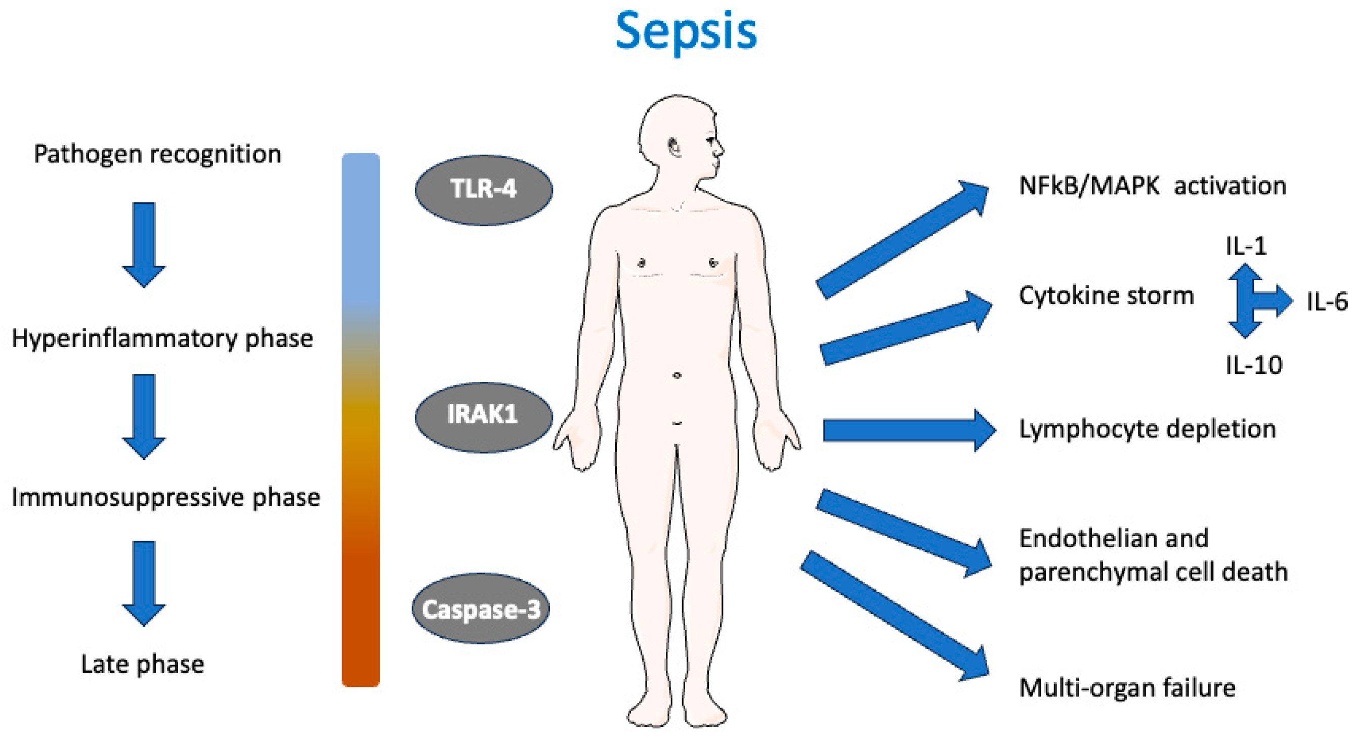 Sepsis, a life-threatening condition characterized by immune dysregulation and organ damage, remains a significant clinical challenge. Natural antioxidant compounds (NAOs) such as quercetin, EGCG, resveratrol, curcumin, and chlorogenic acid have shown promising anti-inflammatory and anti-apoptotic effects in preclinical models of sepsis and related conditions, yet the molecular mechanisms underlying their actions remain incompletely defined. In this study, we performed comprehensive molecular docking analyses to investigate the binding affinities and interaction profiles of these NAOs with three key proteins central to inflammatory and apoptotic signaling: Toll-like receptor 4 (TLR-4), interleukin-1 receptor-associated kinase 1 (IRAK1), and caspase-3. Our results demonstrate that all five compounds exhibit favorable binding affinities with these targets, forming multiple hydrogen bonds and hydrophobic interactions with critical active site residues. Notably, curcumin and EGCG consistently displayed the strongest binding affinities across the three proteins, with docking scores comparable to or surpassing those of reference inhibitors. Resveratrol demonstrated highly stable binding poses, particularly with caspase-3, while quercetin and chlorogenic acid showed moderate but reproducible affinities. Overall, this study provides new mechanistic insights into how NAOs may target central mediators of inflammation and cell death. Experimental validation is essential to confirm these interactions, assess binding affinities, and fully elucidate the therapeutic potential of NAOs in sepsis.
