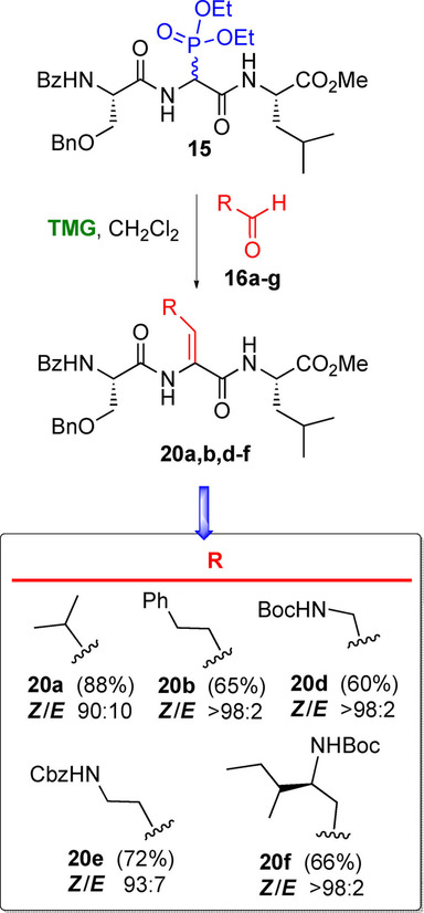 Our site-selective modification of serine or threonine units in peptides allows the generation of β-substituted dehydroamino acids, which increase peptide resistance to hydrolysis and may improve their biological properties. Both the terminal and internal positions can be modified, and different customizable units can be activated separately. Remarkably, high Z selectivity is achieved, even at internal positions. The conversion involves a one-pot oxidative radical scission/phosphorylation process by using the low-toxicity (diacetoxyiodo)benzene/iodine system as the scission reagent. The resulting α-amino phosphonates undergo a Horner-Wadsworth-Emmons reaction to produce the dehydroamino acid derivatives (in a Z/E ratio of usually >98:2) under mild and metal-free conditions.