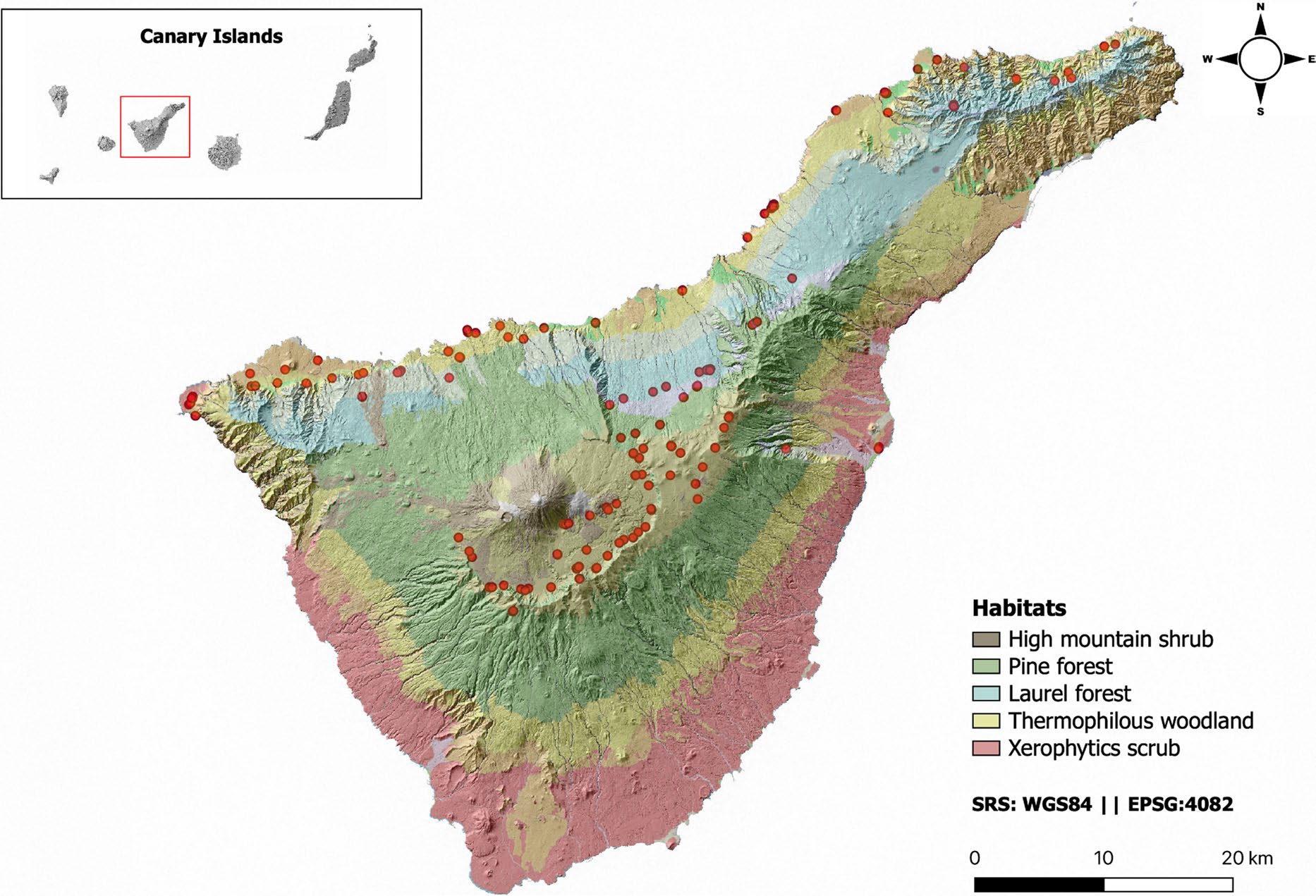 Rabbits have travelled with humans to the most remote archipelagos, having been introduced on at least 800 islands worldwide. This herbivore has caused a devastating effect on endemic insular plants, causing changes in species composition, cascading extinctions and disruption of native seed dispersal systems worldwide. However, its ecological impacts as disrupting native seed dispersal systems have not been studied from a holistic perspective in any of the archipelagos where rabbits were introduced. Here, we assess the role of rabbits as frugivores and seed-dispersers on the most extensive and diverse island of the Canary Archipelago, Tenerife, across its five main vegetation zones represented in an altitudinal gradient 0–3715 m a.s.l. To this end, 120 transects per vegetation zone were conducted (August 2020–November 2021) to collect fresh faecal samples from a total of 244 latrines. They consisted of 29,538 droppings in which we found seeds from 73 plant species, 29 of which were identified to species level (13 endemic, eight natives and eight introduced by humans). About 70% of the seeds were identified as fleshy-fruited plant species while the remaining nine were dry fruits. Of the former, only nine showed a percentage of intact seeds greater than 75%, another nine species between 50 and 75%, and three lower than 50%. The digestive effect of rabbits on seedling emergence was generally low, compared to that produced by native seed dispersers. Since fleshy-fruited plants and rabbits have not been linked in their evolutionary history in the Canaries, the former seems to have their own legitimate seed dispersers.