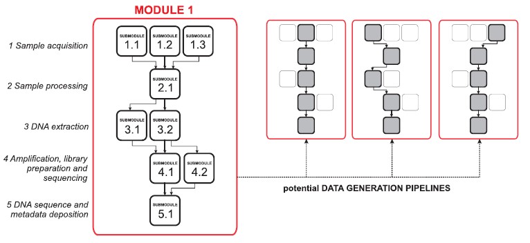 Metazoan metabarcoding is emerging as an essential strategy for inventorying biodiversity,with diverse projects currently generating massive quantities of community-level data. The potential for integrating across such data sets offers new opportunities to better understand biodiversity and how it might respond to global change. However, large-scale synthesesmay be compromised if metabarcoding workflows differ from each other. There are ongoing efforts to improve standardization for the reporting of inventory data. However, harmonization at the stage of generating metabarcode data has yet to be addressed. A modular framework for harmonized data generation offers a pathway to navigate the complex structure of terrestrial metazoan biodiversity. Here, through our collective expertise as practitioners,method developers, and researchers leading metabarcoding initiatives to inventory terrestrial biodiversity, we seek to initiate a harmonized framework for metabarcode data generation, with a terrestrial arthropod module. We develop an initial set of submodules covering the 5 main steps of metabarcode data generation: (i) sample acquisition; (ii) sample processing; (iii) DNA extraction; (iv) polymerase chain reaction amplification, library preparation, and sequencing; and (v) DNA sequence and metadata deposition, providing a backbone for a terrestrial arthropod module. To achieve this, we (i) identified key points for harmonization, (ii) reviewed the current state of the art, and (iii) distilled existing knowledge within submodules, thus promoting best practice by providing guidelines and recommendations to reduce the universe of methodological options.We advocate the adoption and further development of the terrestrial arthropodmodule.We further encourage the development of modules for other biodiversity fractions as an essential step toward large-scale biodiversity synthesis through harmonization.