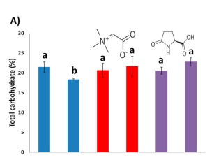 Climate change has increased the severity of drought episodes by further reducing precipitation in vulnerable zones. Drought induces a substantial decrease in agricultural water, reducing crop yields. Consequently, addressing water consumption can increase farmers’ profits. This work describes lab-to-field research in Zea mays, using two biostimulants: glycine betaine (GB) and Lpyroglutamic acid (PG). The biostimulant optimal dosages were selected using a hydroponic system with 20% polyethylene glycol and nursery experiments under water-deficit irrigation. The established dosages were evaluated in field trials in which irrigation was reduced by 20%. Laboratory biostimulant optimisation showed in stressed treated seedlings (GB 0.1 mM; PG 1 mM) an increased dry weight, relative growth rate and water use efficiency, reducing seedling growth loss between 65 and 85%, respectively. Field trials using a GB-optimised dosage showed an increase in plants’ growth, grain yield and flour Ca content. In addition, grain flour carbohydrate content and protein remained similar to control well-watered plants. Finally, the economic aspects of biostimulant treatments, water consumption, water sources (ground vs. desalinated) and grain biomass were addressed. Overall, GB treatment demonstrated to be a valuable tool to reduce water consumption and improve farmers’ earnings.