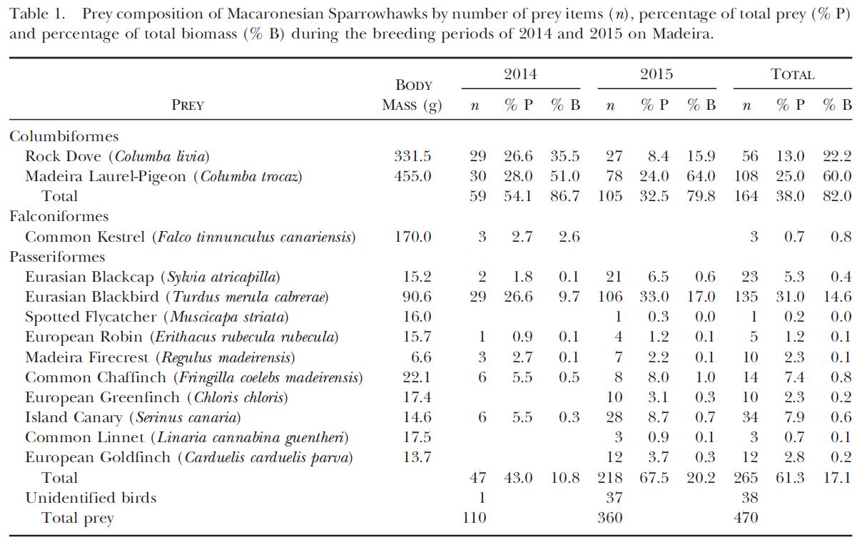 Food habits of the Macaronesian Sparrowhawk (Accipiter Nisus Granti) on Madeira