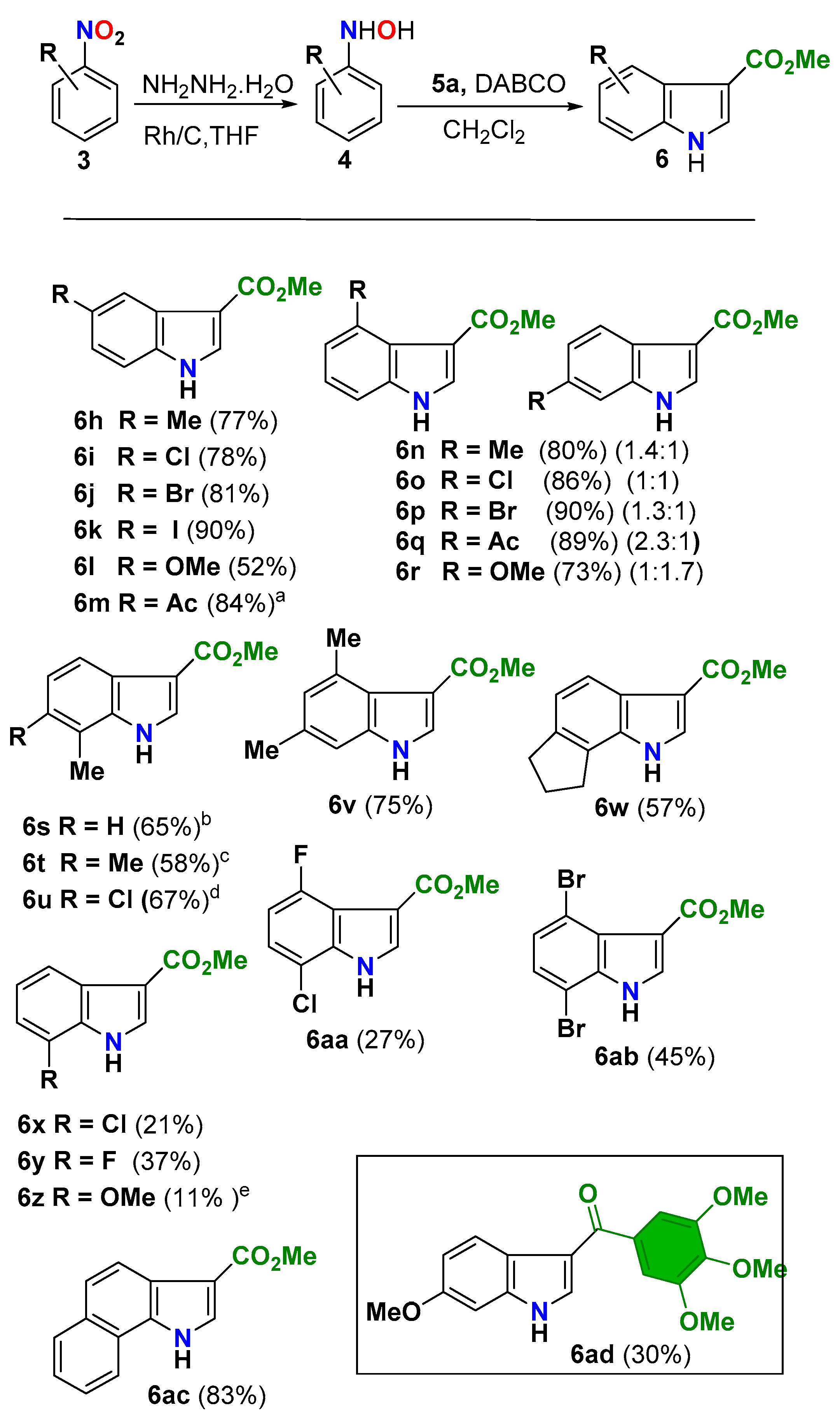 A consecutive 2-step synthesis of N-unprotected polysubstituted indoles bearing an electron-withdrawing group at the C-3 position from readily available nitroarenes is reported. The protocol is based on the [3,3]-sigmatropic rearrangement of N-oxyenamines generated by the DABCO-catalyzed reaction of N-arylhydroxylamines and conjugated terminal alkynes, and delivers indoles endowed with a wide array of substitution patterns and topologies.