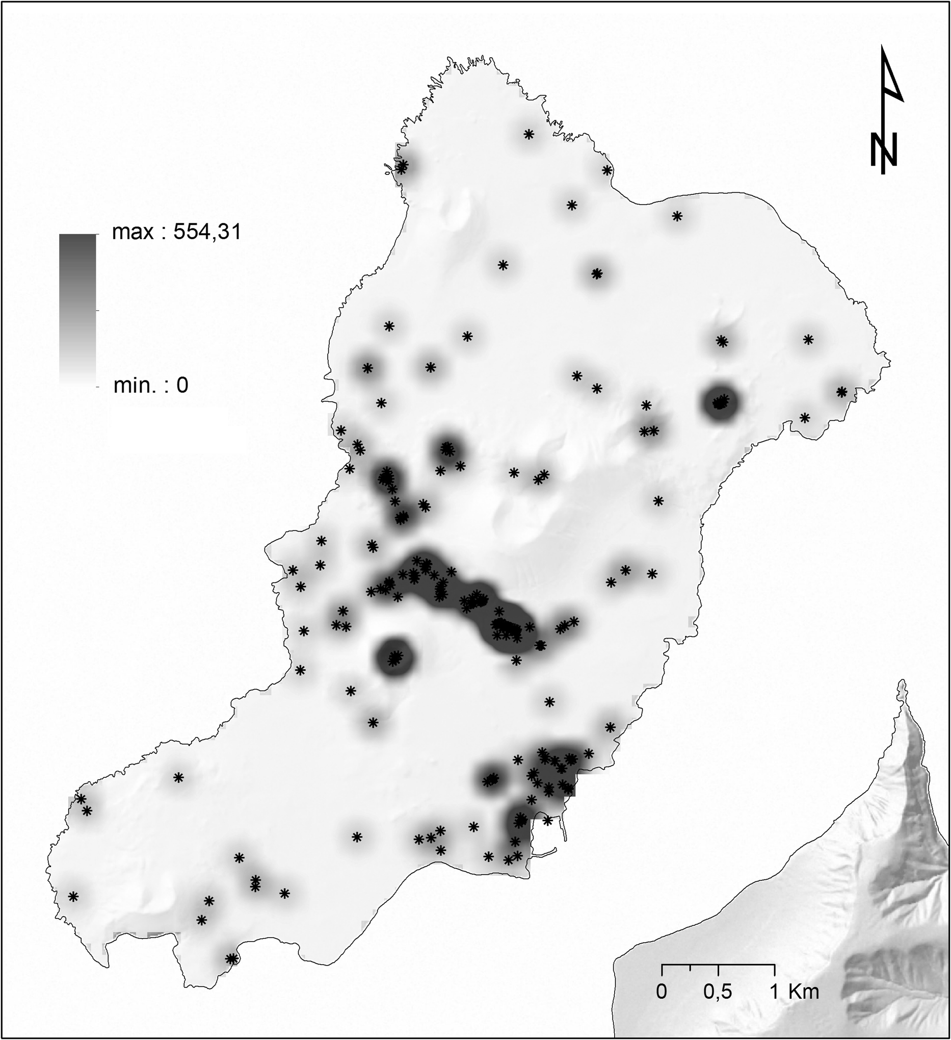 Cats (Felis silvestris catus) are one of the most pernicious invasive species on islands, being responsible for the decline and extinction of many vertebrate taxa. Eradications programs are a powerful tool to fight against cat impacts on islands, but their implementation requires planning and design to prevent failure. In that sense, gathering data on cat habitat use, abundance and trophic interactions provides key information to effectively design management actions. The present contribution presents a simple resource-efficient methodology using cat feces to assess cat distribution, density and trophic ecology on an inhabited islet. This information is essential in order to effectively organize trapping efforts and minimize subsequent impacts of other species if a control or eradication campaign is undertaken. Additionally, our research effort evaluated the potential influence of coastal and anthropic resources on cat diet, which can also provide useful information for planning aside management actions. Cat distribution on our model islet, La Graciosa, was ‘clumped’, presenting higher densities in anthropic areas (villages and farms). The invasive house mouse and the European rabbit were the main prey items, although native invertebrates, reptiles and birds were also consumed. Cats on La Graciosa ingested a large quantity of garbage, which was negatively correlated with distance from human settlements. Considering the low time and resource requirements of this methodology, and the useful basic ecological information it provides, it can be employed to make optimal management planning decisions for small inhabited islands where cat control or eradication programs are being considered.