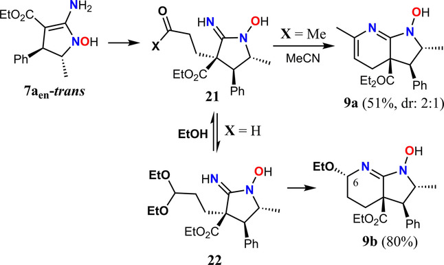 | A modular, stereodiversified and scalable synthesis of 5‐membered cyclic N‐hydroxylamidines endowed with three contiguous stereogenic centres is reported. The synthesis utilizes 2‐cyano‐3‐aryl‐4‐nitro‐alkynoates as key building blocks, which are provided by a novel 3‐component Knoevenagel ‐Michael addition manifold carried out as an aqueous emulsion (on water). The key building blocks are obtained as separable mixtures of two series of diastereomers: 2,3,4‐syn,syn and 2,3,4‐syn,anti. Both series were separately transformed into the corresponding 5‐membered 3,4,5‐trisubstituted N‐hydroxylamidines by a tandem hydrogenation cyclization reaction (stereodiversification phase). These N‐hydroxylamidines are functionalized at C3‐methinic position of the ring (alpha to the amidine function) by a robust and unprecedented N‐amidinoxyl radical‐mediated auto‐oxidation process (hydroxylation), or by a diastereoselective enamine‐based C−C bond forming manifold (creation of an all‐carbon quaternary centre). The outcome of the latter is biased by the relative disposition of substituents in the ring, affording C3‐quaternized 5‐membered cyclic N‐hydroxylamidines or 2,9‐diazabicyclo[4.3.0]non‐1‐en motives. Finally, the Ti(III)‐reduction of these quaternized N‐hydroxylamidines generates the corresponding amidines in excellent yields. |