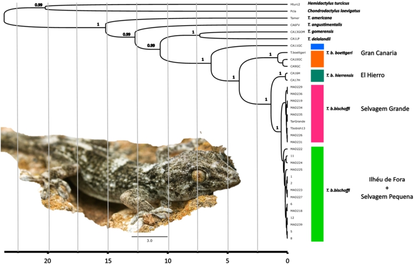 Within vertebrates, reptiles are good island colonisers, often leading to considerable levels of intraspecific diversity among populations inhabiting different islands/archipelagos. This study explores the mitochondrial phylogeographic structure of Tarentola boettgeri, a gecko species endemic to the Macaronesian archipelagos of Selvagens and the Canary Islands. Our research introduces a novel monophyletic group, comprising the populations from the islands of Selvagem Pequena and Ilhéu de Fora. Furthermore, we confirm the previously identified genetic clusters associated with Selvagem Grande, Gran Canaria and El Hierro. We estimate that the origin of T. boettgeri dates to the upper Miocene (ca. 6.4 Mya), and that the separation of T. boettgeri bischoffi on Selvagem Grande, Selvagem Pequena, and Ilhéu de Fora, occurred ca. 0.5 Mya. The absence of genetic differences between Selvagem Pequena and Ilhéu de Fora suggests recent gene flow or founder events, possibly facilitated by land connections during major glaciations. Conversely, the geographic barriers between Selvagem Grande and Selvagem Pequena likely persisted, preventing genetic admixing. The significant genetic distances observed among all populations underscore the necessity of an integrative taxonomic revision for T. boettgeri. In light of our findings, and with particular consideration of the small population sizes of T. boettgeri bischoffi on Selvagem Pequena and Ilhéu de Fora, we propose that the identified monophyletic groups should be managed as Evolutionarily Significant Units (ESUs). Accordingly, our study highlights the importance of recognizing ESUs in island-restricted reptile populations for targeted conservation efforts, especially given their unique intraspecific diversity and the vulnerability of their habitats.